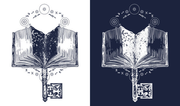 Open Book And Vintage Key Color Tattoo And T Shirt Design Symbol Wall Stickers Graphic Drawing Universe Myloview Com