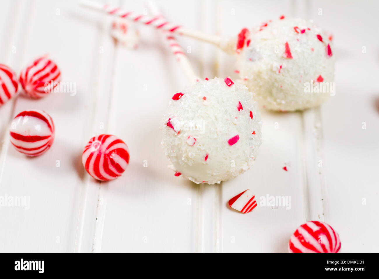 Peppermint Chocolate Cake Pops Dipped In White Chocolate And Candy Cane Bits Stock Photo Alamy